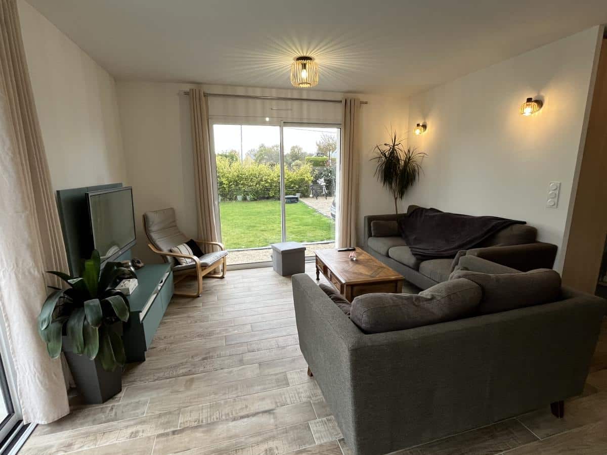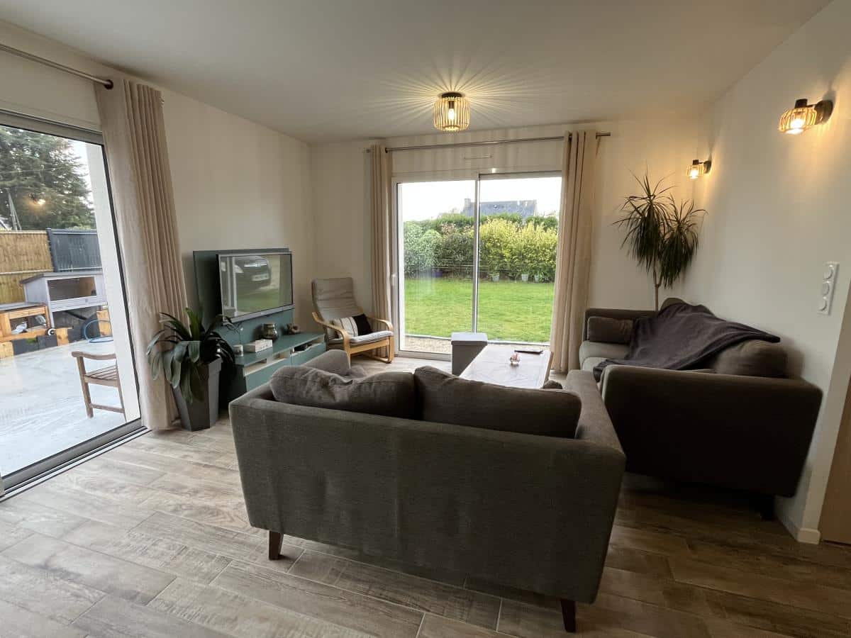 Idéalement située entre Hénon et Quessoy, cette maison de plain-pied achevée en 2025 offre une surface de 121 m². Elle comprend : - Hall d'entrée avec rangements donnant sur la pièce de vie composée du salon-salle à manger et cuisine aménagée et équipée avec un îlot central pouvant accueillir 12 personnes, palier desservant trois chambres, salle d'eau, WC, couloir avec dressing ouverte donnant sur la chambre parentale, salle d'eau avec WC. - Garage attenant avec ouverture motorisée et chauffage au sol. - Allée gravillonnée au-devant, terrasse et jardin exposée Sud-Ouest, le tout sur une parcelle de 456 m². Caractéristiques : - Achèvement en 2024. - Chauffage pompe à chaleur aérothermie. - Plancher chauffant sur la surface totale, y compris le garage. - Assainissement individuel de 2024. Elle bénéficie d'un environnement agréable tout en étant à seulement 5 minutes de Quessoy, 15 minutes de Lamballe et 20 minutes de Langueux.
